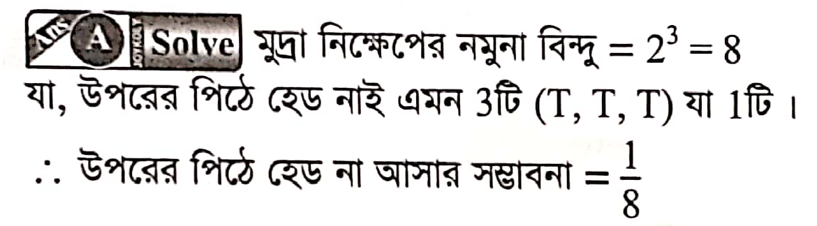 একটি মুদ্রা পরপর তিনবার টস করা হলে, পর্যায়ক্রমে মুদ্রাটির হেড এবং টেইল পাবার সম্ভাব্যতা হবে ?
