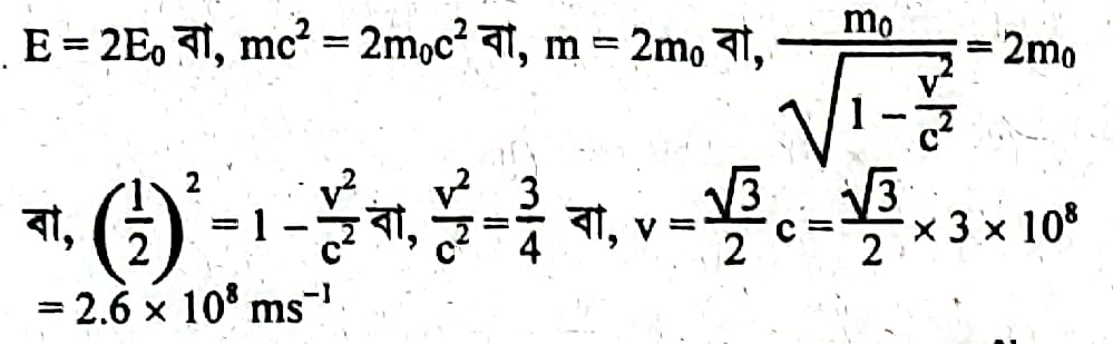 একটি কণার মোট শক্তি এর স্থির অবস্থায় শক্তির দ্বিগুণ। কণাটির দ্রুতি কত?