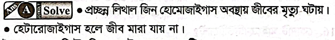 | হোমোজাইগাস লিথাল (aa) | মৃত (Dead) | ২৫% |