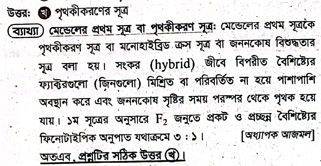 পৃথকীকরণের সূত্রের ব্যাখ্যা 👇