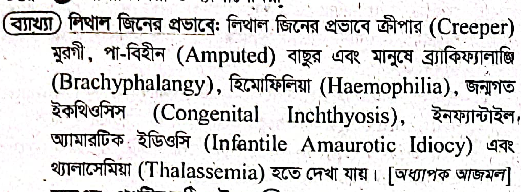 লিথাল জিনের কারণে কোন রোগ হয়?