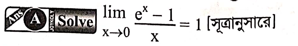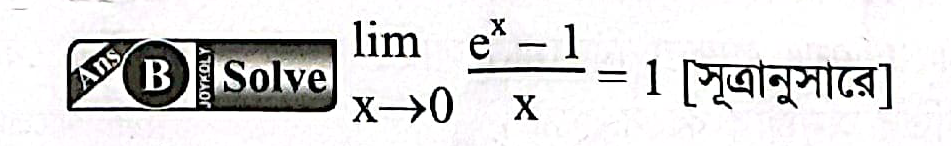 প্রশ্ন: \( \lim_{x \to 0} \frac{e^x - 1}{x} = ? \)
